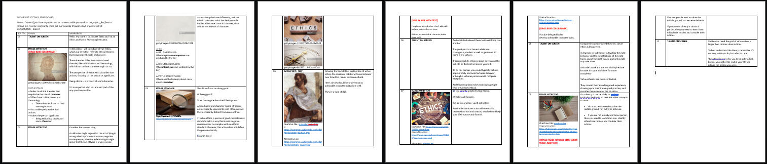 From the script, I created a full visual storyboard, with screen-by-screen narrative, visuals, and text slides