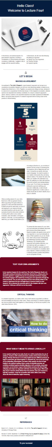 Audience: Adult learners conducting advanced research in pursuit of their doctorateResponsibilities: Instructional Design, eLearning Strategist, Graphic Design, Content CreatorTools: Canvas, HTML, Canva, Stripo, Unsplash, Freepik, and other image resources