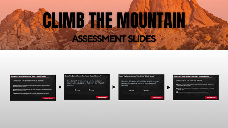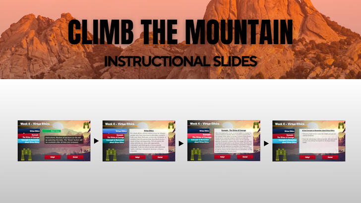 While gamifying the modules of an undergraduate course, a step in the game’s journey of progressing levels to the top of a mountain was needed. I developed an assessment aligned with the module’s learning outcomes that was engaging, informative, and provided immediate feedback.